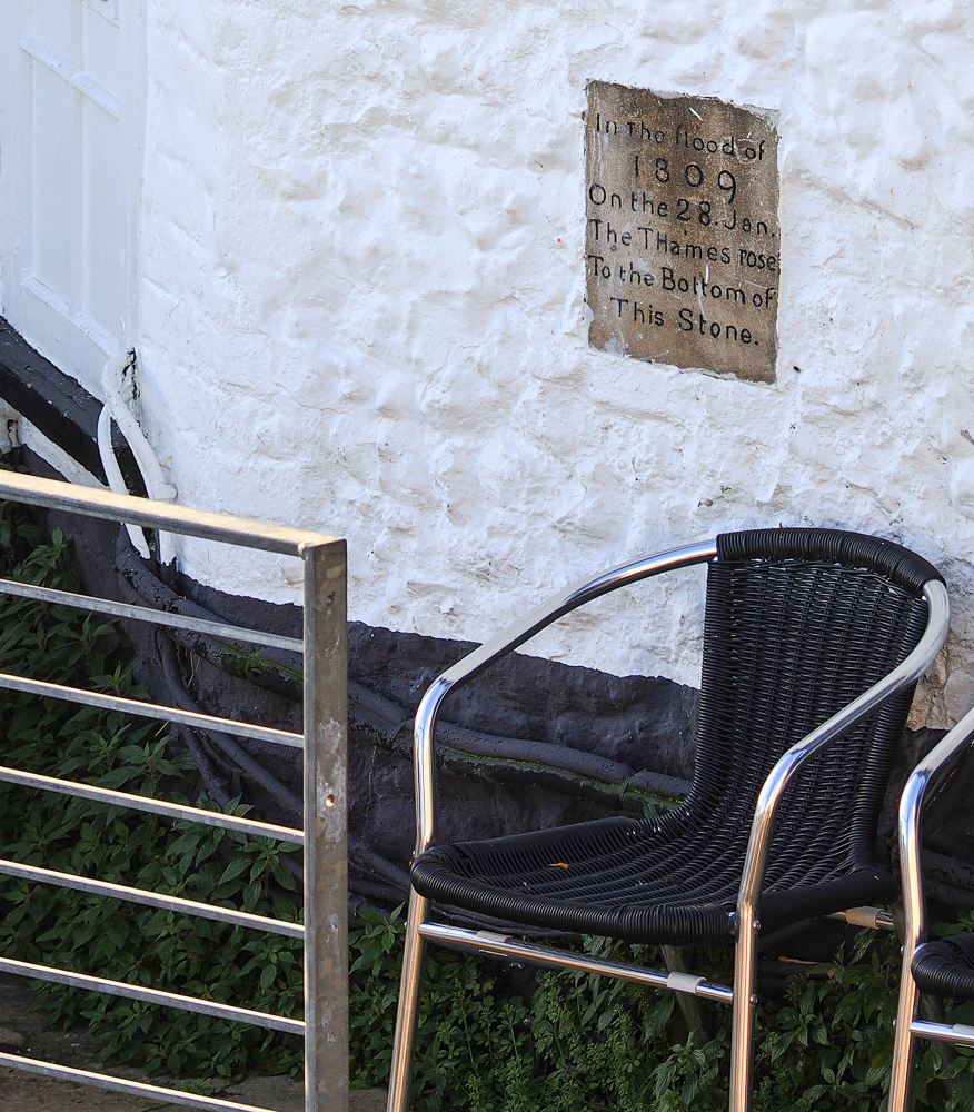 This is the view from Henley bridge of a really busy spot, especially in the summer, the Angel on the Bridge river terrace. Many readers will be here at some time during the new year of 2026. The premises are Grade II listed and date to 1728 but most customers here are too busy enjoying themselves to notice the old flood stone set into the wall which reads: “In the flood of 1809 On the 28th Jan The Thames rose To the bottom of this Stone”.