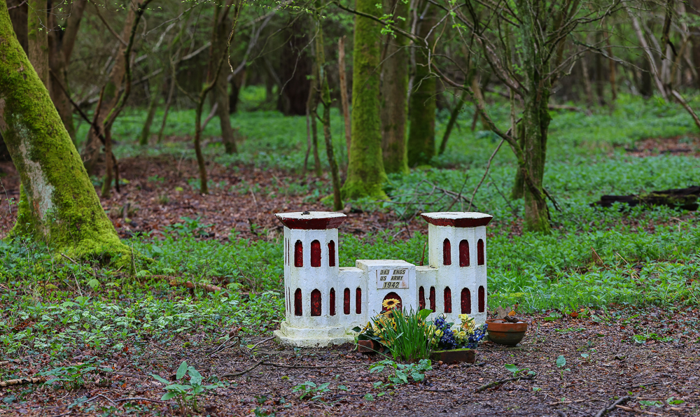 It is reputed to have been built by US serviceman Jack Sharp and to have been one of two such memorials. There must be people still around today who keep up the condition of the site and replenish the flowers, but does anyone know the location of the other one?
